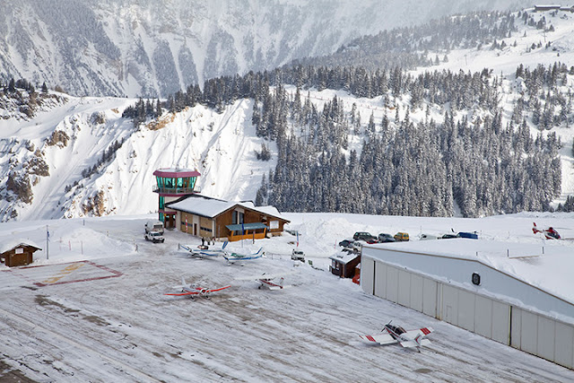Courchevel, French alps: The airport at the Courchevel 1850 ski resort in the Three Valleys