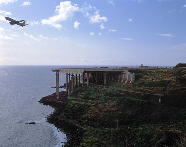 Funchal airport, Madeira: the runway is adjacent to the shore