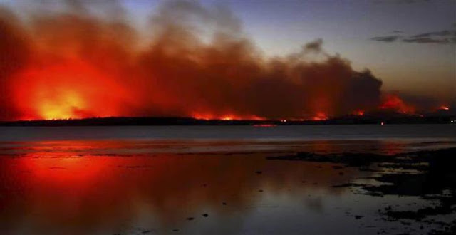 The Deans Gap fire burns near Sussex Inlet, about 150 km (93 miles) south of Sydney, in this handout picture provided by the Rural Fire Service on January 12, 2013. Picture taken January 12, 2013.