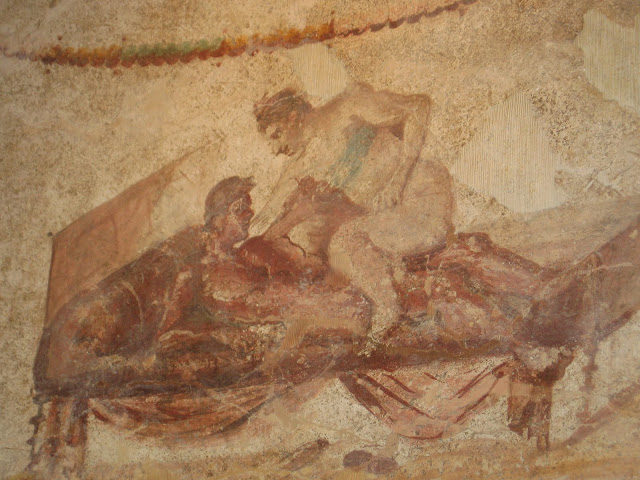 the most interesting building in pompeii, is a very well-preserved brothel. It’s a 2 story building that actually had “menus” painted on the walls where a “patron” could order what he wanted. These “menus” are amusingly graphic and still amazingly visible today.