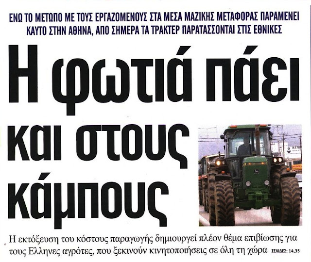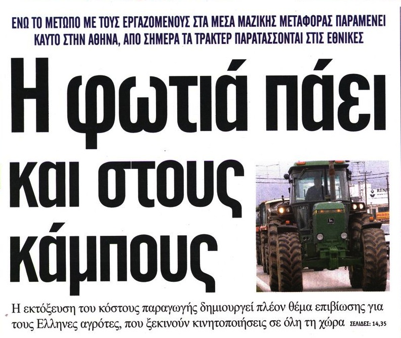 Οι δε αγρότες τώρα ξυπνήσανε! Μα ποτέ δε θα είναι ξύπνιοι γιατί κοιμούνται με τα τσαρούχια! Τόσα χρόνια τι κάνανε? Ότι θα κάνουνε και τώρα. Φίλοι αγρότες εμπαθής σας φαίνομαι δεν είμαι όμως, την τραγική αλήθεια σας λέω.