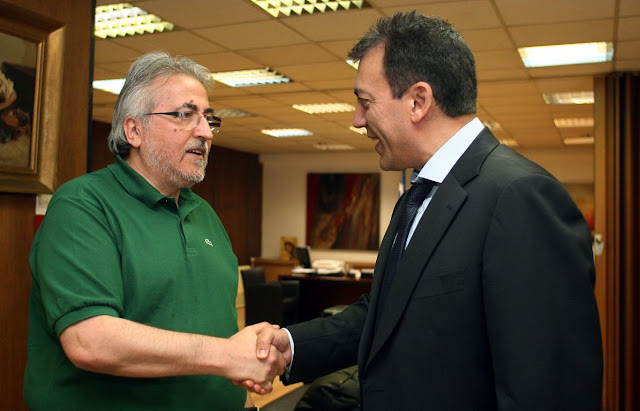 2012: Ο πρόεδρος της ΓΣΕΕ Γιάννης Παναγόπουλος και ο υπουργός εργασίας Γιάννης Βρούτσης έχουν κάθε λόγο να είναι χαρούμενοι αφού συμφώνησαν να μη πειραχτούν οι… συνδικαλιστικές συντάξεις. |