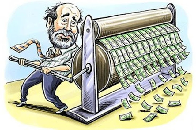 Για να καταλάβουμε τα παραπάνω, ας υποθέσουμε ότι αύριο η ΕΚΤ εκδίδει φρέσκο χρήμα πενήντα δισ. ευρώ με τα οποία αγοράζει ομόλογα από όλες τις τράπεζες της ευρωζώνης. Τί κάναμε ως εδώ; Αυξήσαμε την νομισματική βάση αλλά η αγορά δεν έχει δει ακόμη δεκάρα τσακιστή. Και ούτε πρόκειται να δει ώσπου να αποφασίσουν οι τράπεζες να βγάλουν αυτό το χρήμα από τα σεντούκια τους χορηγώντας δάνεια. Και για να μιλήσουμε με πραγματικά νούμερα κι όχι με παραδείγματα, ας σημειώσουμε ότι, με την πολιτική αυτή, η ΕΚΤ έχει αυξήσει την νομισματική βάση κατά 550 δισ. ευρώ μέσα σε τέσσερα μόλις χρόνια.