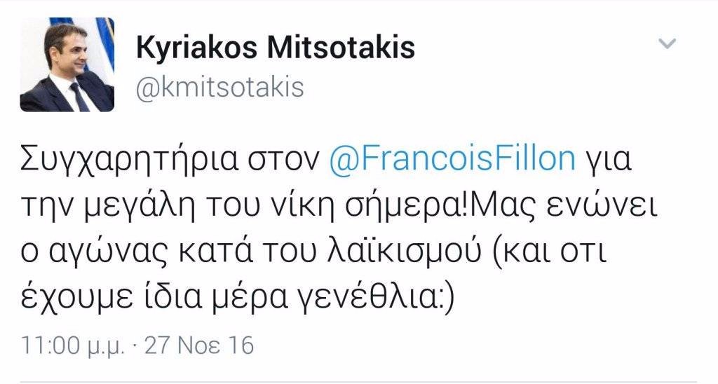 *** Στη Γαλλία, όπου πρόσφατα το σκάνδαλο του Φρανσουά Φιγιόν και της γυναίκας του, βγήκε στη δημοσιότητα, κατέστρεψε κάθε ελπίδα του υποψηφίου της Δεξιάς, για τις προεδρικές εκλογές. Στην Ελλάδα ο διευθυντής του Γραφείου Τύπου της Νέας Δημοκρατίας και στενός συνεργάτης του Κυριάκου Μητσοτάκη, Μακάριος Λαζαρίδης, αντί να επιχειρηματολογεί, υβρίζει δημοσιογράφους της ΕΡΤ γιατί τόλμησαν να κάνουν ρεπορτάζ για το #Mareva_gate στο Δελτίο Ειδήσεων. Προειδοποίησε μάλιστα πως το «κομ-ιλ-φο της ΝΔ τελείωσε». Μια χαρά τα γαλλικά του πάντως…