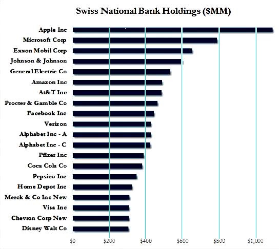 Από τα 700 δισ. του επενδυτικού κεφαλαίου τής SNB, τα 140 είναι ήδη τοποθετημένα σε μετοχές και η αναλογία όσο πάει και μεγαλώνει. Δεν είναι υπερβολή να πούμε ότι ο ελβετικός κολοσσός έχει ιδιαίτερα βαρύνοντα λόγο στην Apple, μπορεί να ταρακουνήσει την Microsoft και είναι ο βασικός μέτοχος τής Facebook ενώ έχει εξαιρετικά υψηλή επιρροή σε μονοπώλια-γίγαντες όπως η Procter & Gamble, η Amazon ή η General Electric. Παράλληλα, ο ισολογισμός τής τράπεζας σχεδόν αγγίζει σε ύψος το ΑΕΠ τής χώρας, κάτι που ακούγεται τρομακτικό στ’ αφτιά όσων αντιλαμβάνονται το τι σημαίνει αυτό: σε περίπτωση κατάρρευσής της, ουδείς θα μπορέσει να την στηρίξει.