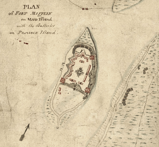 Fort Mifflin (1772-1962; originally called Fort Island Battery) – A Revolutionary War Coastal Fort first established as Mud Island Fort in 1772 on the Schuykill River, below Philadelphia on Mud Island, Philadelphia County, Pennsylvania. more