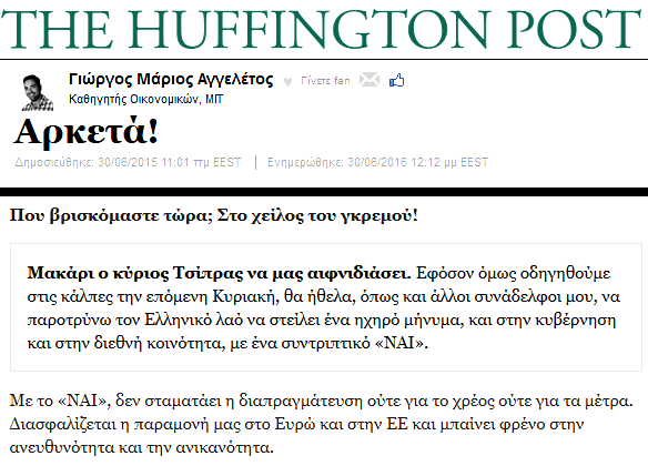 Απόσπασμα άρθρου ενός εκ των δεκατεσσάρων πανεπιστημιακών λίγο πριν το δημοψήφισμα του 2015. |