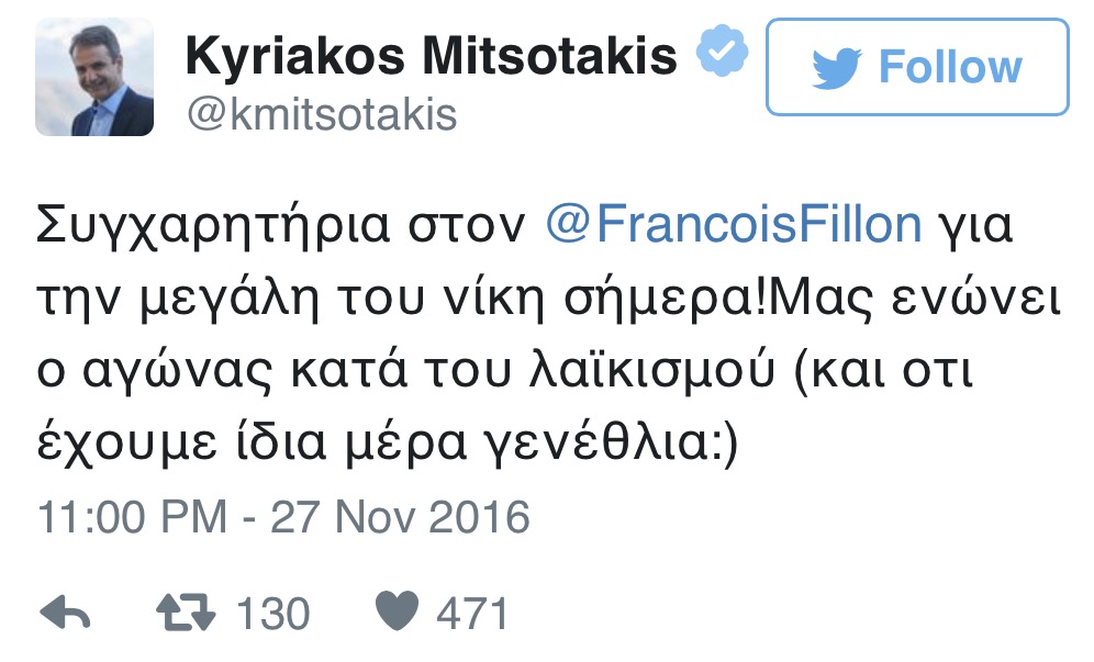 debunking: Από την μία, το πόσο ακραίος ειναι ο ΣΥΡΙΖΑ το είδαμε την τελευταία διετία. Παπάρια μάντολες. Από την άλλη, με βάση τα ελληνικά δεδομένα, πρακτικά καλώ τον οποιονδήποτε να βρει διαφορές στο πολιτικό στυλάκι των Καμμένων και της ΝΔ. Εδώ ακόμα και ο “επίσημος” εκπρόσωπος της δεξιάς στην Γαλλία, ο “αντιλαϊκιστής” Φιγιόν ντε, εξετράπει προς τα ακροδεξιά προκειμένου να φάει τις Λεπενικές ψήφους επαναλαμβάνοντας το αντίστοιχο λάθος του Σαμαρά (3).