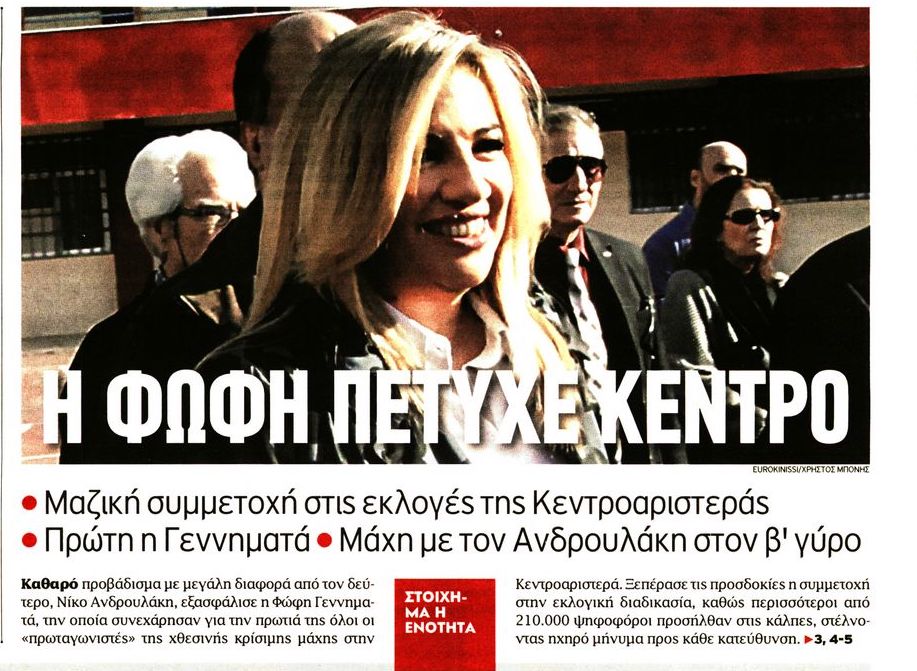 το αποτέλεσμα των χθεσινών εκλογών δεν ανησυχεί ούτε τον συριζα ούτε τη νδ. το εγχείρημα είχε ήδη ναρκοθετηθεί από την αντίστροφη, πολιτικά, διαδικασία που ακολουθήθηκε, καθώς το πρόγραμμα του νέου κόμματος και τα ζητήματα στρατηγικής της σοσιαλδημοκρατίας θα συζητηθούν.. μετά την εκλογή του αρχηγού. η ανορθόδοξη αυτή διαδικασία έδωσε τον πρώτο λόγο στους μηχανισμούς και όχι στη πολιτική. και οι μηχανισμοί του πασοκ, παρά τη μεγάλη φθορά του, απέδειξαν ότι «είναι ακόμα εδώ », ενωμένοι και δυνατοί